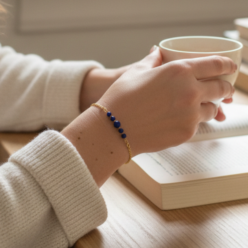 Les pierres naturelles sont souvent associées à des bienfaits symboliques : elles sont choisies pour accompagner, apaiser ou renforcer l’énergie selon leurs vertus. Ce bracelet devient ainsi un bijou chic et porteur de sens, idéal pour sublimer votre poignet en douceur.